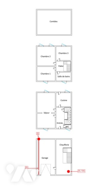 - au rez-de-chaussée : entrée, cuisine, séjour, salon, wc ;